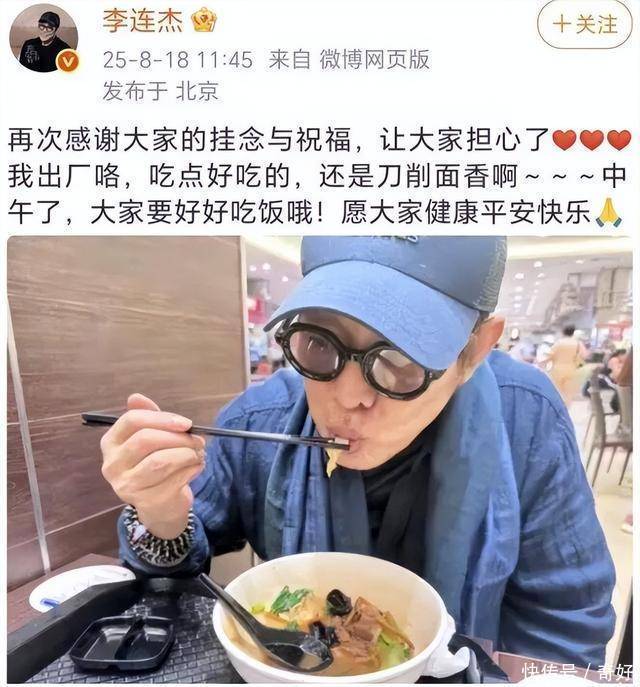 隔天李连杰就坐在面馆大快朵颐,全然不似病床上虚弱的模样。