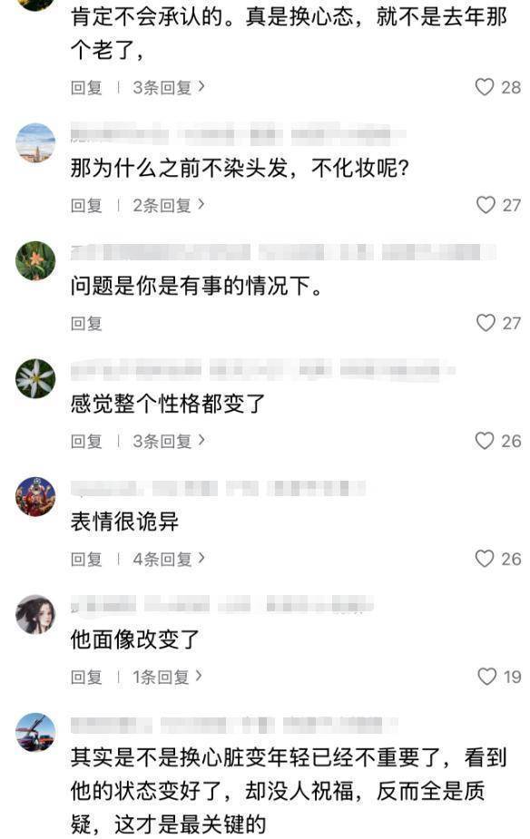 评论区里,不是说他“面相变了、就是说他性格变了,表情很诡异”。